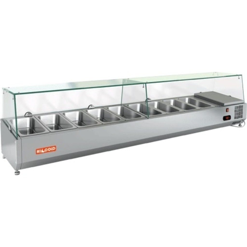 Каталог оборудования Холодильное оборудованиеВитрины для ингредиентовВитрина холодильная для ингредиентов HICOLD VRTG 1970 к PZЕ3 (1/3) Витрина холодильная для ингредиентов HICOLD VRTG 1970 к PZЕ3 (1/3) Код товара: 064-657 Поделиться: WhatsAppTelegram СравнитьДобавить в КПВ избранное 0 72 730 ₽ В корзину 0 шт Под заказСамовывоз сегодня бесплатно Взять в кредит Купить в лизинг Получить консультацию в WhatsApp Описание Характеристики Отзывы 0 Инструкции 3 Витрина холодильная для ингредиентов HICOLD VRTG 1970 к PZЕ3 (1/3) предназначена для охлаждения, кратковременного хранения и демонстрации ингредиентов, салатов и готовых блюд на предприятиях общественного питания и торговли. Устанавливается на холодильные столы для пиццы серии PZE3 благодаря встроенным креплениям в нижней части корпуса. На фото показана аналогичная модель с настольной установкой. Ключевые особенности: Корпус из нержавеющей стали — долговечность, простота ухода. Электронная панель управления — точная регулировка температуры. Исполнение G — стеклянная надстройка для удобного обзора продуктов. Высота витрины — 459 мм — компактное размещение на рабочей поверхности. Вместимость: 9xGN1/3 — рациональная организация хранения (гастроёмкости приобретаются отдельно). Совместимые модели столов: PZE3-1111/SN, PZE3-1111/GN HICOLD VRTG 1970 к PZЕ3 (1/3) — это профессиональная настольная витрина, которая сочетает компактные размеры, современное управление и высокое качество охлаждения. Отличный выбор для пиццерий, ресторанов и кафе, где важны удобство доступа, скорость работы и эффектная подача продуктов.Изображение товара, представленного на фото, может отличаться от его фактического вида. Показать все Габаритные размеры1970×385×459 ммДиапазон рабочей температурыот +2 до +7 °CДлина1970 ммГлубина385 ммВысота459 ммТип крышкиСтеклянная Гастроемкостей9 штТип гастроемкостейGN1/3 Мощность150 ВтНапряжение220 ВТип охлажденияСтатическое Материал изготовленияНержавеющая сталь ХладагентR134 Мощность0,15 кВтВес нетто38 кгВес брутто97 кгТип оттайкиРучная Габариты в упаковке2160×550×580 ммБрендHicold Оставить отзыв Еще никто не оставил отзыв на этот товар Инструкция на HICOLD VRTG 1970 к PZЕ3.pdfСхема установки на стол.jpgДекларация о соответствии.pdf Похожие товары Перейти в каталог Под заказ Цена по запросу Витрина для ингредиентов Polair VT2-G (1/3) открытого типа В наличии 46 639 ₽ Витрина холодильная для ингредиентов TEFCOLD VK33-120 С этим товаром покупают В наличии 79 865 ₽ Стол морозильный Cooleq SS45BT В наличии 12 636 ₽ Льдогенератор HURAKAN HKN-IMF12M В наличии 63 864 ₽ Шкаф холодильный МХМ Капри 0,5М Ранее просмотрено Под заказ Цена по запросу Витрина холодильная Dazzl Galaxy 080 Plug-in 190 В наличии 105 742 ₽ Стол холодильный среднетемпературный HiCold SNE 11/TN О Под заказ 188 400 ₽ Витрина нейтральная Carboma KC78-150 N 1,2-1 (9005) Под заказ 104 401 ₽ Шкаф холодильный универсальный Carboma V560С В наличии 136 792 ₽ Стол холодильный среднетемпературный HiCold GNE 12/TN О Под заказ Цена по запросу Горка холодильная Dazzl Vega DG 080 H160 Plug-in 190 Под заказ 192 592 ₽ Копия Стол холодильный среднетемпературный HiCold GNE 221/TN О