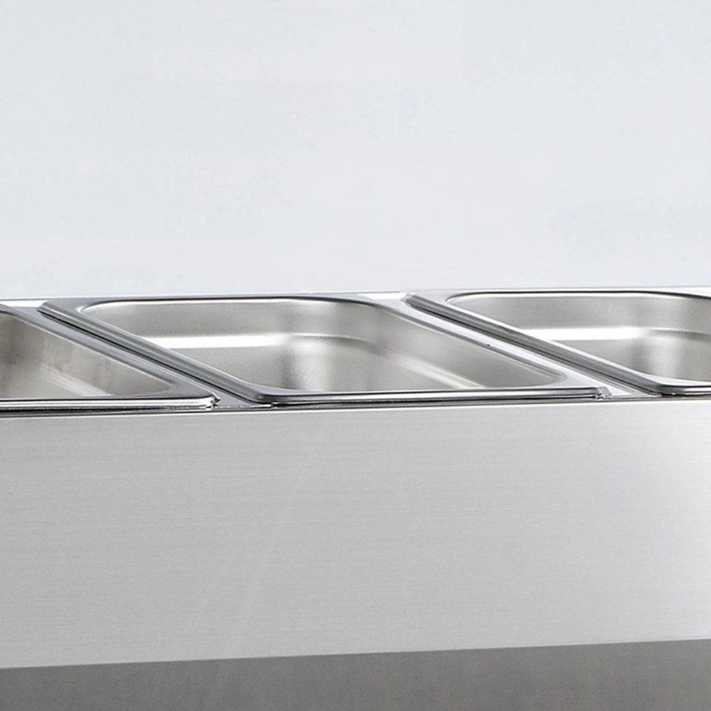 Каталог оборудования Холодильное оборудованиеВитрины для ингредиентовВитрина холодильная для ингредиентов TEFCOLD VK38-120 Витрина холодильная для ингредиентов TEFCOLD VK38-120 Код товара: 010-384 Поделиться: WhatsAppTelegram СравнитьДобавить в КПВ избранное 0 82 699 ₽ В корзину 0 шт В наличииСамовывоз сегодня бесплатно Взять в кредит Купить в лизинг Получить консультацию в Max Описание Характеристики Отзывы 0 Витрина холодильная для ингредиентов TEFCOLD VK38-120 предназначена для кратковременного хранения и демонстрации готовых салатов, мясных и рыбных закусок, а также ингредиентов на предприятиях общественного питания и торговли. Корпус и внутренняя обшивка выполнены из нержавеющей стали, что обеспечивает долговечность и легкость очистки. Гастроемкости в комплект не входят. Особенности: Статическое охлаждение — равномерное поддержание температуры для деликатных продуктов. Механическое размораживание — надежное удаление наледи без вмешательства пользователя. Хладагент R600a — экологичный и энергоэффективный. Электронный термостат и градусник — точная настройка и контроль температуры. Гнутый стеклянный колпак — обеспечивает обзор продукции и защиту от внешних воздействий. Регулируемые ножки — удобная установка и устойчивость на неровной поверхности. Климатический класс 4 — работа при температуре окружающей среды до +32°C. Вместимость — 4×GN 1/3 глубиной 150 мм, удобно для салатов и закусок. Перегородки — 3 длинных и 4 коротких для удобного разделения продуктов. Уровень шума — 47 дБ, почти бесшумная работа. Хладагент — 0,04 кг, эффективное охлаждение при минимальном расходе. Внутренние размеры — 845×305×155 мм, компактное размещение емкостей. TEFCOLD VK38-120 — компактная и надежная витрина для демонстрации и кратковременного хранения продуктов с безопасным поддержанием температурыИзображение товара, представленного на фото, может отличаться от его фактического вида. Показать все Габаритные размеры1200×395×435 ммДиапазон рабочей температурыот +2 до +10 °CДлина1200 ммГлубина395 ммВысота435 ммТип крышкиСтеклянная Гастроемкостей4 штТип гастроемкостейGN 1/3 Мощность0,112 ВтНапряжение220 ВТип охлажденияСтатическое Уровень шума47 дБКлиматический класс4 ХладагентR600a Вес нетто40 кгВес брутто45 кгТип оттайкиРучная Габариты в упаковке1280×440×310 ммБрендTefcold Оставить отзыв Еще никто не оставил отзыв на этот товар Похожие товары Перейти в каталог Под заказ Цена по запросу Витрина для ингредиентов Polair VT2-G (1/3) открытого типа Под заказ 60 350 ₽ Витрина для ингредиентов Polair VT2v-G (1/3) с подсветкой и защитным колпаком С этим товаром покупают В наличии 99 023 ₽ Стол холодильный среднетемпературный Polair ТМ2GN-G В наличии 161 242 ₽ Льдогенератор ICEMAKE ND 50 AS Под заказ 142 619 ₽ Шкаф холодильный МХМ Капри 1,5М нержавейка Ранее просмотрено Под заказ 293 258 ₽ Камера холодильная Север КХ-17,5 (1,36×5,86×2,72) В наличии Цена по запросу Витрина холодильная настольная Cooleq CW-120S Под заказ 70 299 ₽ Витрина холодильная для ингредиентов HICOLD VRX 2000 1/4 В наличии Цена по запросу Витрина холодильная настольная Cooleq CW-85 BLACK В наличии Цена по запросу Витрина холодильная настольная Cooleq CW-70 BLACK Под заказ 475 107 ₽ Камера холодильная Север КХ-30,6 (1,36×11,26×2,46) Под заказ 46 795 ₽ Витрина для ингредиентов Carboma A30 SM 1,2 (5 GN1/4)