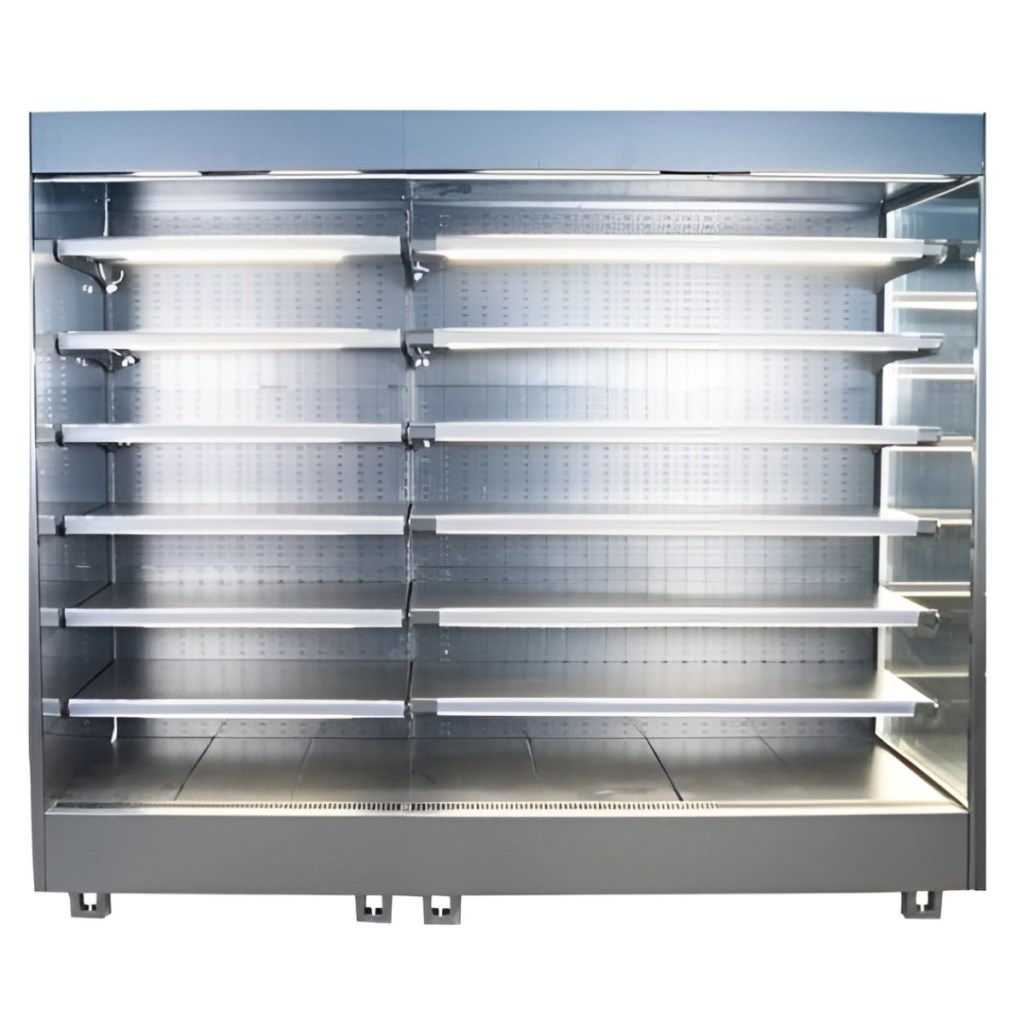 Система воздушной завесы предотвращает попадание тёплого воздуха внутрь витрины, обеспечивая стабильный температурный режим даже при интенсивной эксплуатации. Встроенное LED-освещение делает выкладку яркой и привлекательной, при этом потребляет минимум электроэнергии.
