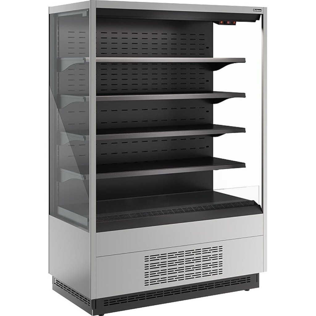 Горка холодильная Carboma FC20-07 VM 1,3-2 (версия 2.0) (ночная шторка) (9006-9005) применяется на предприятиях общественного питания и торговли для охлаждения, кратковременного хранения и предпродажной демонстрации напитков, мяса, птицы, полуфабрикатов, молочных и гастрономических изделий.