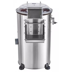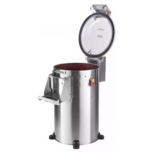 Картофелечистка крепится к полу при помощи анкерных болтов и имеет компактные габариты, благодаря чему подходит для использования даже в ограниченном пространстве. Электродвигатель надежно защищен от влаги, а управление интуитивно и удобно. Объем загрузки составляет 17 кг, производительность — до 300 кг в час. Шланг для отвода отходов подключается к канализации, предусмотрена возможность подсоединения фильтра (приобретается отдельно).