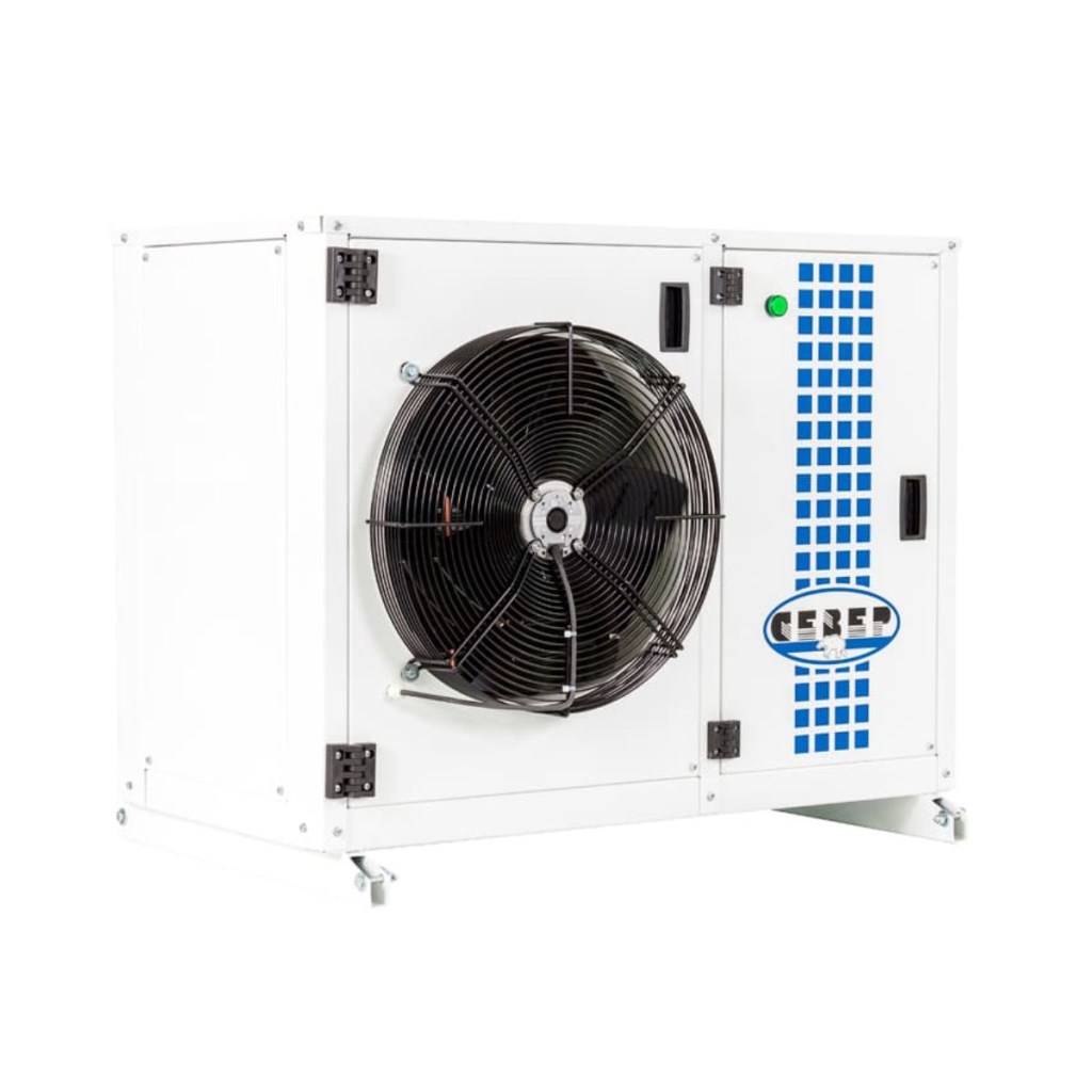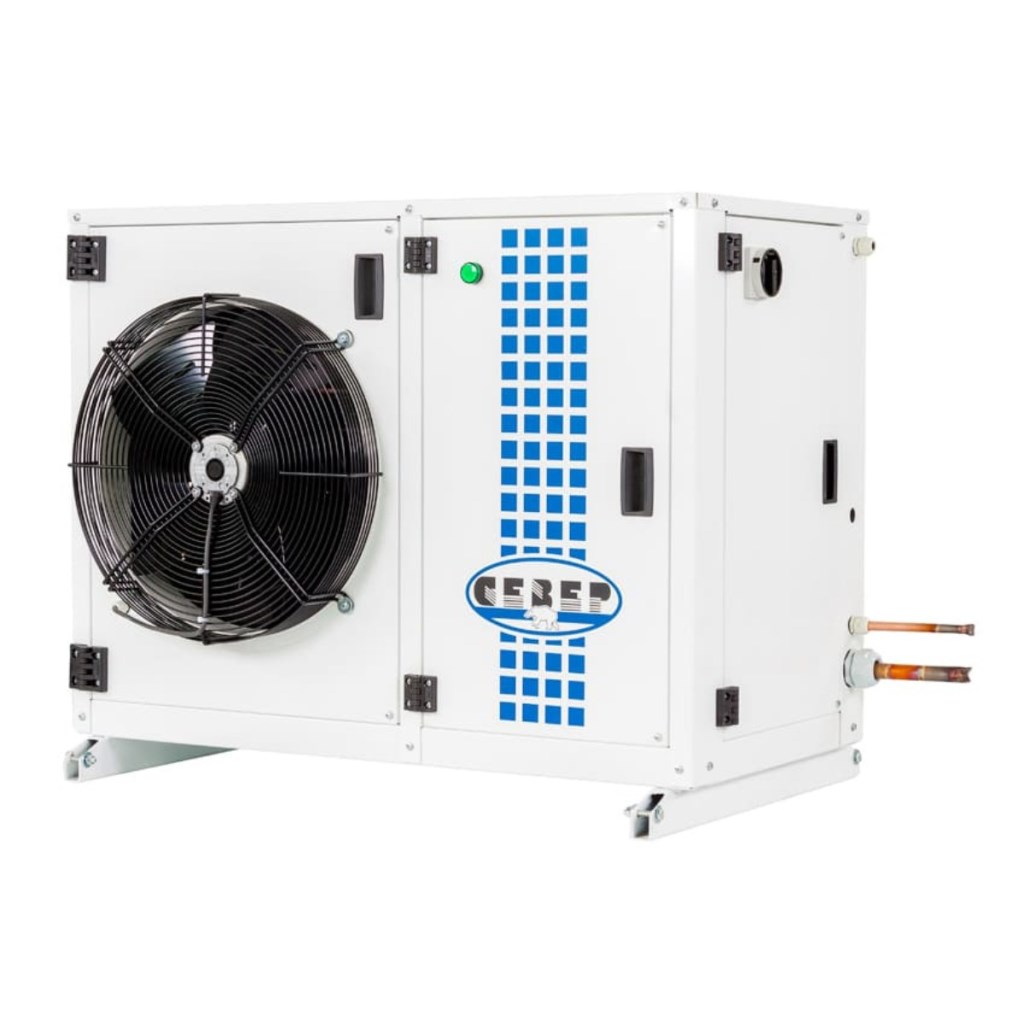 • Конденсатор: классический медно-алюминиевый с осевым 4-полюсным вентилятором (450 мм, 220 V).
