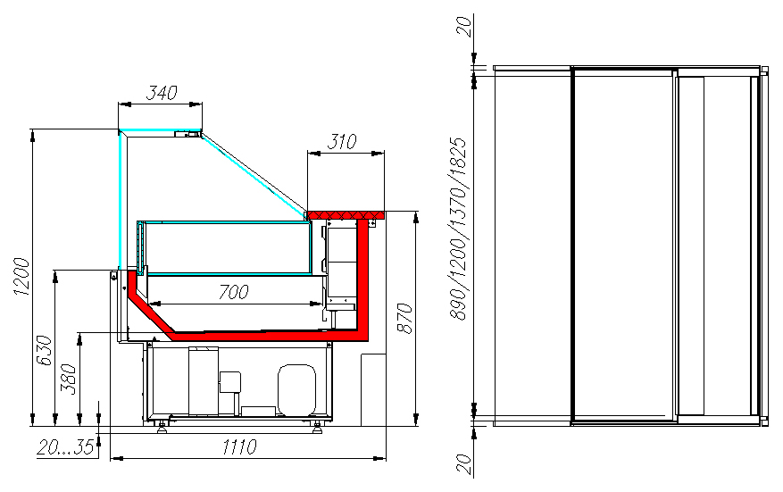Отдельностоящие витрины приобретаются только вместе с боковинами. При установке нескольких витрин одной линии с одинаковым температурным режимом достаточно заказать 2 боковины на всю линию.