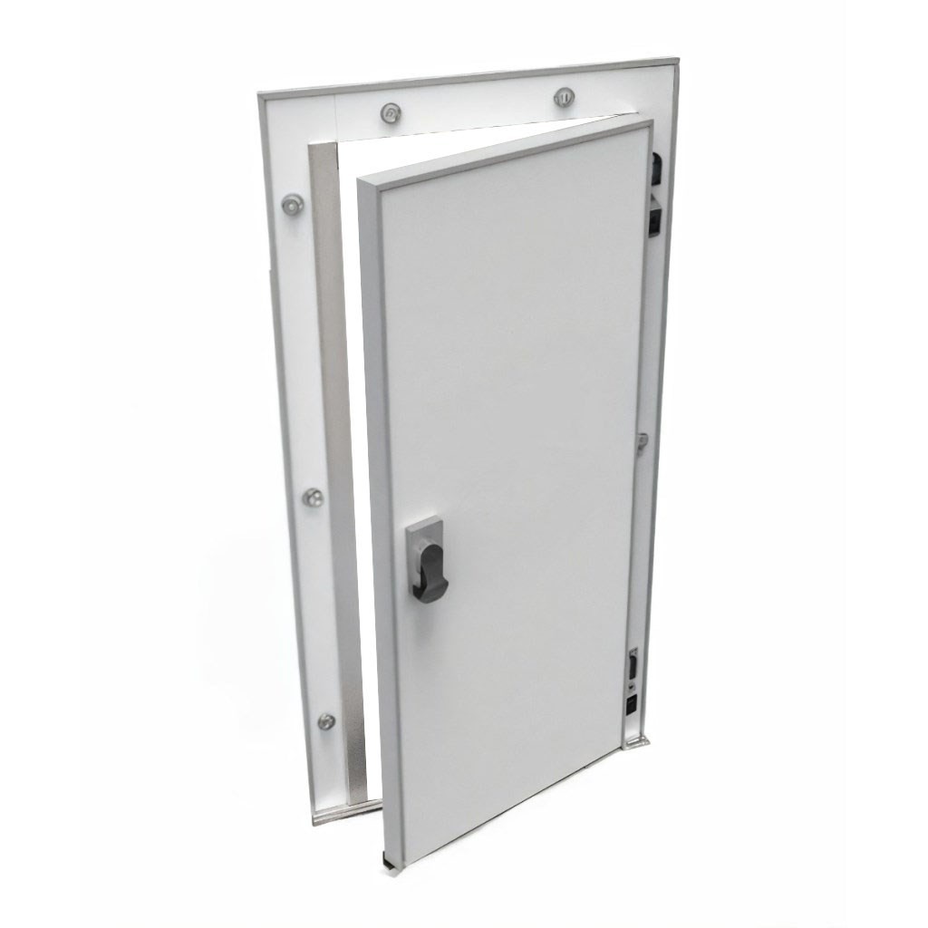 Каталог оборудования Холодильное оборудованиеДвери для холодильных камерРаспашные одностворчатые холодильные двериДверь холодильная распашная одностворчатая НТ-РДО-900*1900/80 (с металлической рамой) Дверь холодильная распашная одностворчатая НТ-РДО-900*1900/80 (с металлической рамой) Код товара: 065-812 Поделиться: WhatsAppTelegram СравнитьДобавить в КПВ избранное 0 42 443 ₽ В корзину 0 шт Под заказСамовывоз сегодня бесплатно Взять в кредит Купить в лизинг Получить консультацию в WhatsApp Описание Характеристики Отзывы 0 Инструкции 1 Дверь холодильная распашная одностворчатая НТ-РДО-900*1900/80 (с металлической рамой) – надежное и энергоэффективное решение для установки на предприятиях пищевой промышленности, в логистических центрах, на складах и терминалах. Дверь спроектирована для стабильной работы при экстремально низких температурах, что делает её оптимальным выбором для объектов с повышенными требованиями к сохранности продукции. В низкотемпературном исполнении НТ-80 дверь предназначена для эксплуатации при температурах от -5° до -20°. Особенности: Теплоизоляция: плита из пенополиуретана Dow Izolan высокой плотности (40–45 кг/м³) обеспечивает минимальные теплопотери, не содержит вредных хлорфторуглеродов и безопасна для пищевых производств. Пожаробезопасность: предел огнестойкости EI 15 позволяет использовать дверь в зонах с повышенными требованиями к безопасности. Конструкция: прочная рама из анодированного алюминия устойчива к коррозии, дверное полотно покрыто оцинкованной сталью толщиной 0,45–0,65 мм с полиэфирным слоем (RAL 9003), что обеспечивает долговечность и гигиеничность. Герметичность: двухконтурное резиновое уплотнение сотовой структуры на ПВХ-основе исключает мосты холода. Для низкотемпературных камер предусмотрен двухконтурный электрообогрев по периметру, предотвращающий намерзание. Фурнитура: комплектуется надежной европейской фурнитурой. Замок оснащён системой аварийного открывания с флуоресцентной маркировкой, что исключает риск блокировки персонала внутри камеры. Холодильная дверь НТ-РДО-900*1900/80 сочетает в себе прочность, долговечность и высокую энергоэффективность. Она гарантирует надежное сохранение температурного режима и безопасность эксплуатации, полностью соответствуя требованиям предприятий пищевой отрасли и объектов хранения.Изображение товара, представленного на фото, может отличаться от его фактического вида. Показать все Ширина светового проема900 ммВысота светового проема1900 ммТемпературный режимНизкотемпературный (до -25) Толщина двери80 ммОткрываниеЛевое/Правое Замок с аварийным открываниемДа БрендСевер Оставить отзыв Еще никто не оставил отзыв на этот товар Буклет двери изотермические и технологические ТМ Север.pdf Ранее просмотрено Под заказ 53 190 ₽ Ларь морозильный с прямым стеклом CRYSPI ЛВН 600 П (СF 600 FQ) красный без корзин Под заказ 100 188 ₽ Зонт для пароконвектомата Abat ЗВВ-4-6/4П Под заказ 38 627 ₽ Дверь холодильная распашная одностворчатая СТ-РДО-1000*2100/80 (с металлической рамой) В наличии 118 904 ₽ Шкаф холодильный МХМ Капри 1,5СК купе Под заказ 25 620 ₽ Ванна моечная МХМ М-2-0,45-0,8/1,55 (AISI 430, t=0,6) Под заказ 134 541 ₽ Стол холодильный среднетемпературный HiCold SNG 11 HT О Под заказ 135 000 ₽ Горка холодильная Carboma FC20-07 VM 0,6-2 0300 (версия 2.0) (9006-9005) (бок металл)