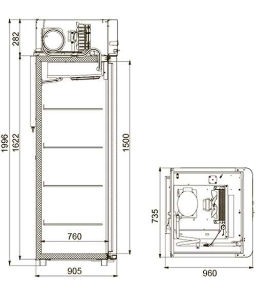 Каталог оборудования Холодильное оборудованиеШкафы холодильныеШкафы морозильные низкотемпературные до -18 °СШкаф морозильный Polair CB107-Sm Alu Шкаф морозильный Polair CB107-Sm Alu Код товара: 062-592 Поделиться: WhatsAppTelegram СравнитьДобавить в КПВ избранное 0 149 175 ₽ В корзину 0 шт Под заказСамовывоз сегодня бесплатно Взять в кредит Купить в лизинг Получить консультацию в WhatsApp Описание Характеристики Отзывы 0 Инструкции 4 Шкаф морозильный Polair CB107-Sm Alu предназначен для демонстрации и надежного хранения продуктов на предприятиях общественного питания и торговли. Цельнозаливной корпус выполнен из стали с полимерным покрытием и дополнен алюминиевыми профилями, что обеспечивает высокую механическую прочность и долговечность конструкции. Алюминиевые элементы дверей и верхней панели подчеркивают современный и премиальный дизайн. Шкаф стабильно работает при температуре окружающей среды до +40 °С и относительной влажности воздуха до 80%, сохраняя продукты в оптимальных условиях. Основные особенности: Электронный блок управления с жидкокристаллическим дисплеем Верхнее расположение агрегата, обеспечивающее удобный доступ к внутреннему объему Клапан Шредера для обслуживания системы охлаждения Компенсационный клапан с ПЭНом обогрева для предотвращения перепадов давления ПЭН обогрева трубки слива конденсата и ПЭН обогрева дверного проема для защиты от наледи Распашной тип дверей с возможностью изменения стороны открывания Интегрированные ручки, встроенные в алюминиевые профили дверей Эластичные уплотнители с магнитными вставками, обеспечивающие максимальную герметизацию Встроенная внутренняя подсветка для удобного обзора содержимого Микропереключатель, отключающий вентилятор и включающий подсветку при открытии двери Регулируемые по высоте ножки и педаль для открывания двери, повышающие эргономику использования Замок для безопасного хранения продукции 4 полки формата GN 2/1 (530×650 мм) с допустимой нагрузкой до 40 кг Толщина теплоизоляции корпуса — 61 мм Изображение товара, представленного на фото, может отличаться от его фактического вида. Показать все Габаритные размеры735×945×1996 ммДиапазон рабочей температурыдо -18 °CДлина735 ммГлубина450 ммВысота1996 ммОбъём700 лМатериал корпусаНержавеющая сталь Тип управленияМеханическое Расход электроэнергии в сутки12 кВтКоличество полок2 штКоличество дверей1 штЗамокЕсть Тип двериМеталлическая Способ открыванияРаздвижные (купе) Напряжение220 ВХладагентR290 Расположение агрегатаНижнее Габариты в упаковке850×988×2160 ммВес нетто128 кгВес брутто152 кгБрендPolair Оставить отзыв Еще никто не оставил отзыв на этот товар Схема POLAIR CB107-Sm.jpgИнструкция на POLAIR CB107-Sm.pdfСертификат соответствия.pdfДекларация о соответствии.pdf Похожие товары Перейти в каталог В наличии 94 265 ₽ Шкаф морозильный для икры и пресервов Polair DP107-S В наличии 161 420 ₽ Шкаф холодильный низкотемпературный Arkto F1.0-S Под заказ 134 714 ₽ Шкаф морозильный Abat ШХн-0,5-01 нерж. В наличии 262 627 ₽ Шкаф морозильный с глухой дверью TEFCOLD GUF140 Под заказ 215 610 ₽ Шкаф морозильный Abat ШХн-1,4-01 нерж. В наличии 140 854 ₽ Шкаф морозильный МХМ Капри 1,12Н НовинкаВ наличии 177 120 ₽ Морозильный шкаф Briskly 7 Frost Под заказ 150 433 ₽ Шкаф морозильный для икры и пресервов TEFCOLD UF400VSG нержавеющий С этим товаром покупают Под заказ 137 624 ₽ Витрина холодильная среднетемпературная Premier Куба Р-125 (0…+7) Под заказ 113 760 ₽ Витр