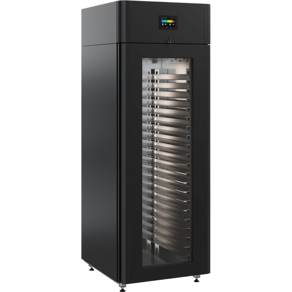 Каталог оборудования Холодильное оборудованиеШкафы холодильныеСпециализированные холодильные шкафыШкаф холодильный для хлебопекарных производств Polair CS107 Bakery Br черный, со стеклом (Тип 2) Шкаф холодильный для хлебопекарных производств Polair CS107 Bakery Br черный, со стеклом (Тип 2) Код товара: 062-625 Поделиться: WhatsAppTelegram СравнитьДобавить в КПВ избранное 0 405 365 ₽ В корзину 0 шт Под заказСамовывоз сегодня бесплатно Взять в кредит Купить в лизинг Получить консультацию в WhatsApp Описание Характеристики Отзывы 0 Инструкции 5 Шкаф холодильный для хлебопекарных производств Polair CS107 Bakery Br черный, со стеклом (Тип 2) предназначен для создания оптимальных условий хранения и расстойки тестовых заготовок на предприятиях общественного питания и торговли. Внешняя обшивка цельнозаливного корпуса выполнена из стали с полимерным покрытием чёрного цвета, внутренняя — из нержавеющей стали. Дверь изготовлена из стеклопакета. Оборудование рассчитано на работу при температуре окружающей среды до +40 °C. В комплект входит 20 пар направляющих размером 400×600 мм. Особенности: Универсальные режимы: охлаждение заготовок и замедление ферментации, хранение, регенерация, брожение и расстойка Динамическое охлаждение с мягким обдувом без заветривания и автоматическая оттайка с системой испарения конденсата Панель управления с 7-дюймовым дисплеем: контроль температуры, влажности (регулируется от 60 до 95 %), скорости вентилятора и времени; возможность создания и сохранения собственных программ Встроенный ультразвуковой увлажнитель (требуется подключение к системе водоочистки и канализации) Эргономичная конструкция: верхнее расположение агрегата, распашная дверь со стеклопакетом и механизмом самозакрывания, педаль для открытия, съёмные направляющие и легко заменяемый уплотнитель с магнитной вставкой Простота ухода: штампованное углубление в дне корпуса для сбора загрязнений Экологичный хладагент R290 Энергоэффективность: потребляемая мощность — 0,55 кВт (охлаждение), 0,9 кВт (нагрев) Толщина стенки корпуса — 43 мм Polair CS107 Bakery Br черный, со стеклом (Тип 2) — современный и многофункциональный шкаф отложенной расстойки, позволяющий точно контролировать процессы подготовки теста и хранения заготовок. Благодаря продуманной конструкции, расширенным режимам и удобному управлению, он идеально подходит для пекарен и кондитерских, стремящихся к высокому качеству продукции и эффективной работе.Изображение товара, представленного на фото, может отличаться от его фактического вида. Показать все Габаритные размеры697×1005×1960 ммДиапазон рабочей температурыот -10 до +40 °CДлина697 ммШирина1005 ммВысота1960 ммОбъём700 лКол-во дверей1 Тип двериСтеклянная Уровень влажностиот 60 до 95 %Направляющие под EN 40*6020 Расстояние между направляющими60 ммХолодильный агрегатВстроенный Тип оттайкиАвтоматическая Тип охлажденияДинамический ПодсветкаЕсть ХладагентR290 Вес нетто180 кгВес брутто205 кгБрендPolairВсе специализированные холодильные шкафы Из нержавейкиВсе специализированные холодильные шкафы Стеклянная дверь Оставить отзыв Еще никто не оставил отзыв на этот товар Схема POLAIR CS107 Bakery Br.jpgИнструкция на POLAIR CS107 Bakery Br.pdfБрошюра на хлебопекарное оборудование POLAIR.pdfДекларация о соответствии.pdfСертификат соответствия.pdf Похожие товары Перейти в каталог Под заказ 391 000 ₽ Шкаф холодильный для вызревания сыра P