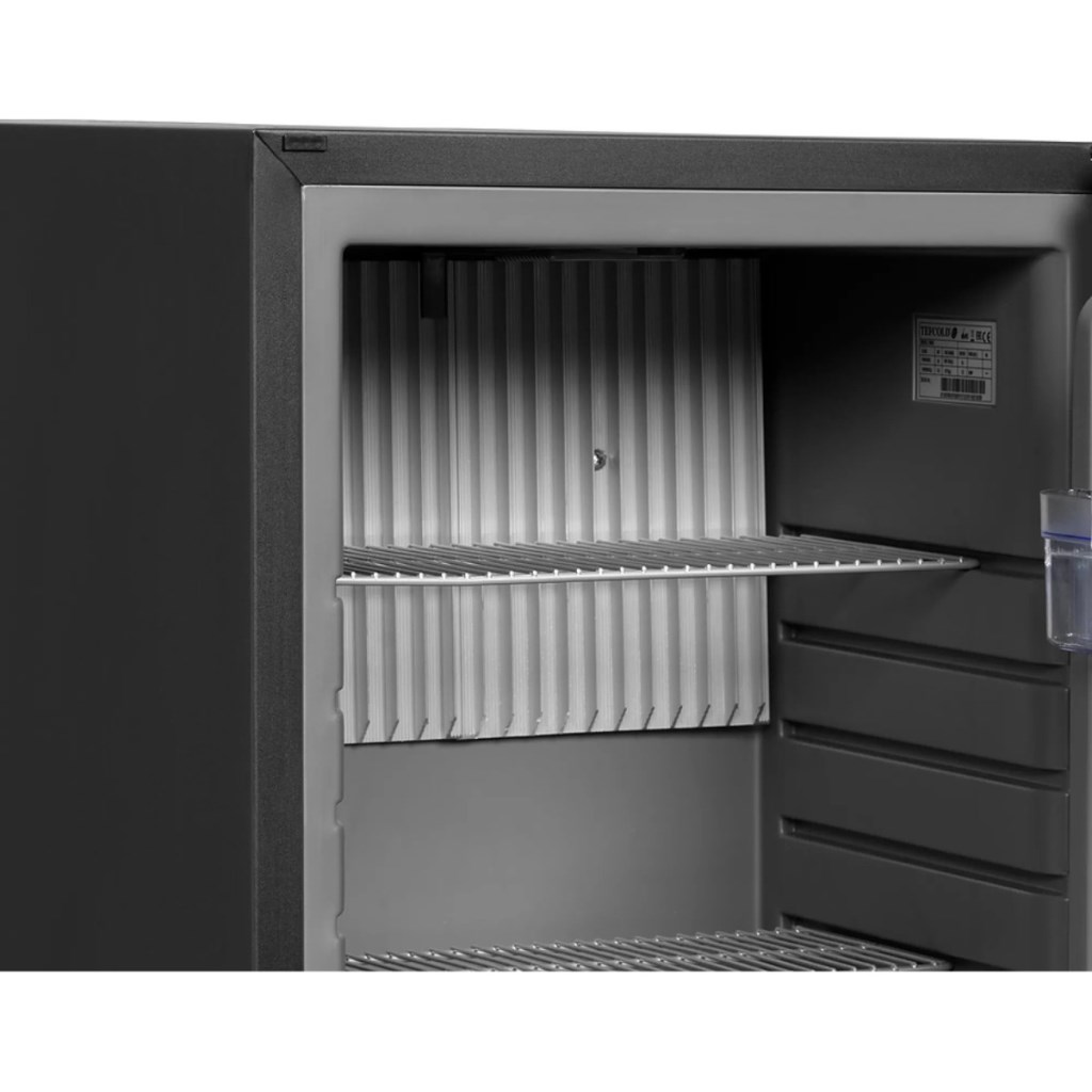 Каталог оборудования Холодильное оборудованиеШкафы холодильныеШкафы холодильные среднетемпературные от 0 до +5 °СМинибар TEFCOLD TM42 черный Минибар TEFCOLD TM42 черный Код товара: 010-449 Поделиться: WhatsAppTelegram СравнитьДобавить в КПВ избранное 0 23 832 ₽ В корзину 0 шт Под заказСамовывоз сегодня бесплатно Взять в кредит Купить в лизинг Получить консультацию в WhatsApp Описание Характеристики Отзывы 0 Инструкции 2 Минибар TEFCOLD TM42 предназначен для хранения алкогольных и безалкогольных напитков при оптимальной температуре в гостиницах, ресторанах, барах и домашних условиях. Модель отличается бесшумной работой, компактными размерами и стильным дизайном. Особенности модели: Абсорбционная система охлаждения — бесшумная и надёжная в эксплуатации. Электронный контроллер с цифровой индикацией температуры. Автоматическая оттайка — не требует обслуживания. Светодиодное внутреннее освещение с активацией при открывании двери. Перенавешиваемая дверь с замком — удобство и безопасность использования. Регулируемые опоры для устойчивости на неровных поверхностях. Энергоэффективный и экологичный хладагент NH₃. Класс энергоэффективности: G. Климатический класс: 3. Эргономичный дизайн — корпус чёрного цвета, внутренняя отделка из прочного ABS-пластика (RAL9005). Диапазон рабочих температур: от –1 до +15 °C. Общий объём — 36 л, полезный — 35 л. Низкое энергопотребление — 0,53 кВт·ч/сутки (193 кВт·ч/год). Максимальная температура окружающей среды — 25 °C. Уровень шума — минимальный (абсорбционная система). Масса хладагента — 0,072 кг. TEFCOLD TM42 — компактное и бесшумное решение для хранения напитков, сочетающее удобство, энергоэффективность и современный дизайн, идеально подходящее для гостиничного и домашнего использования.Изображение товара, представленного на фото, может отличаться от его фактического вида. Показать все Габаритные размеры402×463×560 ммДиапазон рабочей температурыот 0 до +10 °CДлина463 ммГлубина463 ммВысота560 ммОбъём34 лНапряжение220 ВПотребляемая мощность0,05 кВтТип оттайкиАвтоматический Тип охлажденияДинамическое Тип управленияМеханическое Материал корпусаНержавеющая сталь Тип двериМеталлическая Способ открыванияРаспашные Количество полок2 штКоличество дверей1 штЗамокЕсть ПодсветкаЕсть Климатический класс5 Холодильный агрегатВстроенный Расположение агрегатаНижнее Габариты в упаковке450×495×600 ммВес нетто14 кгВес брутто19 кгБрендTefcoldВсе барные холодильные шкафыВсе мини-холодильникиВсе холодильные шкафы для напитковВсе шкафы холодильные среднетемпературные от 0 до +5 °С Из нержавейки Оставить отзыв Еще никто не оставил отзыв на этот товар Инструкция на TEFCOLD TM42.pdfСпецификация на TEFCOLD TM42.pdf Похожие товары Перейти в каталог Под заказ 101 440 ₽ Шкаф холодильный Polair TD103-G В наличии 244 448 ₽ Шкаф холодильный TEFCOLD CBC410G барный черный В наличии 59 415 ₽ Шкаф холодильный Polair DM102-Bravo В наличии 20 499 ₽ Шкаф холодильный для молока HURAKAN HKN-CMC9 Под заказ 219 896 ₽ Шкаф холодильный TEFCOLD FSC1950H В наличии 130 440 ₽ Шкаф холодильный TEFCOLD BA30S-3 барный черный В наличии 104 992 ₽ Шкаф холодильный МХМ Капри 0,5С В наличии 221 755 ₽ Шкаф холодильный TEFCOLD FS1202S С этим товаром покупают Под заказ 26 613 ₽ Шкаф холодильный Pozis Свияга-513-6 В наличии 55 864 ₽ Шкаф холодильный универсальный МХМ ШХСн 0,06 С