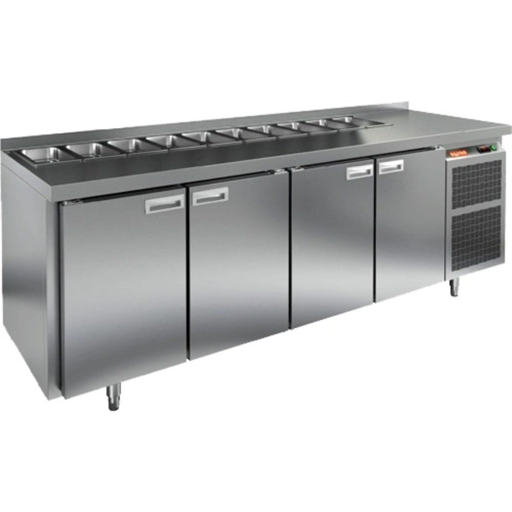 Каталог оборудования Холодильное оборудованиеСтолы охлаждаемыеСтолы холодильные для салатовСтол холодильный для салатов HiCold SL1-1111SN без крышки Стол холодильный для салатов HiCold SL1-1111SN без крышки Код товара: 064-515 Поделиться: WhatsAppTelegram СравнитьДобавить в КПВ избранное 0 191 962 ₽ В корзину 0 шт Под заказСамовывоз сегодня бесплатно Взять в кредит Купить в лизинг Получить консультацию в WhatsApp Описание Характеристики Отзывы 0 Инструкции 2 Стол холодильный для салатов HiCold SL1-1111SN без крышки предназначен для предприятий общественного питания и торговли. Он обеспечивает хранение и подготовку ингредиентов для пиццы, салатов и других блюд, а также охлаждение и кратковременное хранение скоропортящихся продуктов. Модель сочетает рабочую поверхность и холодильный объем, позволяя повару иметь все необходимые компоненты под рукой. Корпус и столешница выполнены из нержавеющей стали, обеспечивая надежность и долговечность. Особенности: Динамическая система охлаждения — равномерное распределение температуры внутри холодильного объема. Автоматическая оттайка — упрощает уход за оборудованием. Электронная панель управления — точная настройка температуры и режимов работы. 4 вместительные внутренние полки формата GN 1/1 — удобное хранение ингредиентов. Автоматические доводчики дверей с фиксатором открытого положения — комфорт и безопасность работы. Легкозаменяемые магнитные уплотнители — простота обслуживания. Открытая агрегатная часть — облегчает доступ для обслуживания. Регулируемые по высоте ножки — адаптация к рабочей поверхности. Столешница с бортом, толщина столешницы и теплоизоляции 50 мм — надежная защита и удобство работы. Размер полки: 430×325мм (GN 1/1) Максимальная глубина гастроемкостей: 100 мм HiCold SL1-1111SN без крышки — многофункциональный и надежный стол для профессиональной кухни. Обеспечивает удобство работы, эффективное охлаждение и безопасное хранение продуктов. Идеально подходит для ресторанов, кафе и пиццерий, где важны скорость работы и качество хранения ингредиентов.Изображение товара, представленного на фото, может отличаться от его фактического вида. Показать все Габаритные размеры2280×600×850 ммДиапазон рабочей температурыот +2 до +10 °CРасположение агрегатаБоковое Материал столешницыНержавеющая Тип столаС дверьми Тип двериГлухая Объём570 лКоличество дверей4 штТип гастроемкостейGN 1/3 Размер полки430×325 ммНапряжение220 ВМощность0,48 кВтТип охлажденияДинамический Тип оттайкиАвтоматическая СтолешницаС бортом Вес нетто143 кгВес брутто163 кгБрендHicold Оставить отзыв Еще никто не оставил отзыв на этот товар Паспорт на HICOLD SL1-1111SN.pdfДекларация о соответствии.pdf Ранее просмотрено В наличии 12 348 ₽ Тостер HURAKAN HKN-TOP6 Под заказ 118 648 ₽ Дверь холодильная распашная двустворчатая НТ-РДД-2200*2400/80 Под заказ 89 817 ₽ Шкаф морозильный со стеклом TEFCOLD UF100G Под заказ 66 072 ₽ Шкаф холодильный МХМ Капри П-390М (ВО, контроллер) В наличии 64 779 ₽ Льдогенератор HURAKAN HKN-IMG25 (гурме) Под заказ 399 870 ₽ Горка холодильная Carboma FC20-07 VL 1,3-1 0300 STANDARD фронт X5L (версия 2.0) (0430) Под заказ 12 274 ₽ Стеллаж с 4-я сплошными полками МХМ С-4-0,45/1,2/1,6