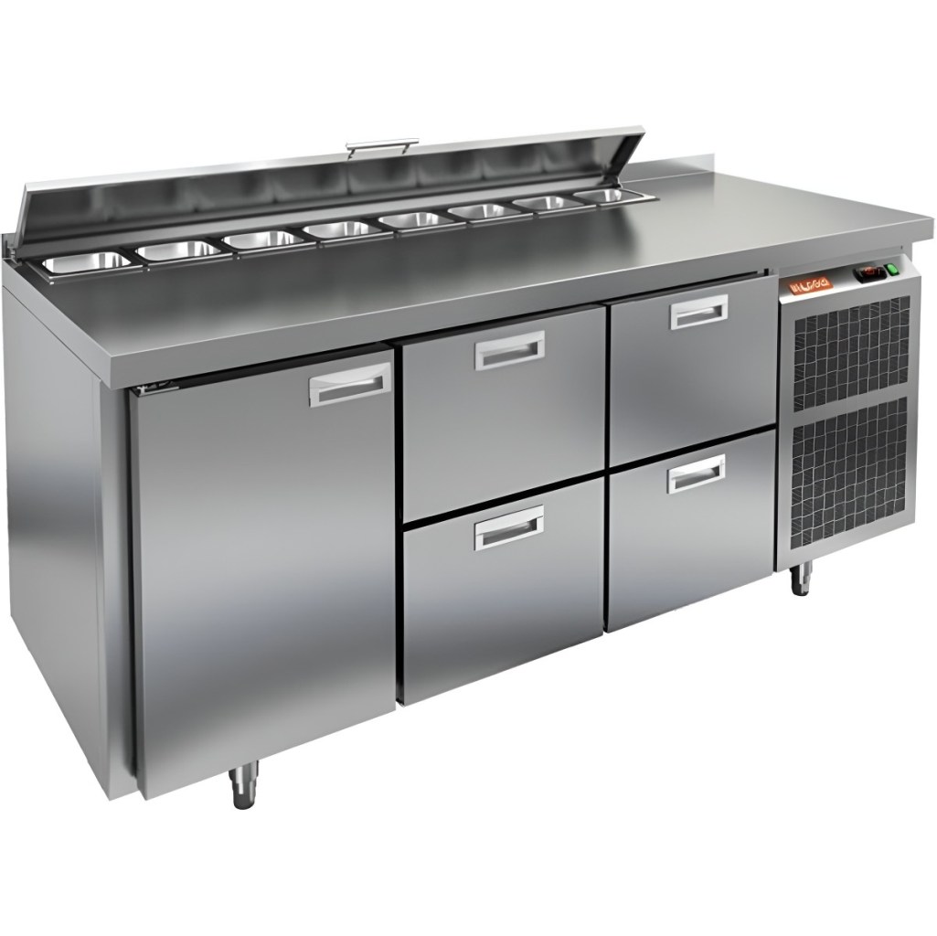 Каталог оборудования Холодильное оборудованиеСтолы охлаждаемыеСтолы холодильные для салатовСтол холодильный для салатов HiCold SL1-122GN (1/3) с крышкой Стол холодильный для салатов HiCold SL1-122GN (1/3) с крышкой Код товара: 064-843 Поделиться: WhatsAppTelegram 0 Цена по запросу Получить консультацию в WhatsApp Описание Характеристики Отзывы 0 Инструкции 2 Стол холодильный для салатов HiCold SL1-122GN (1/3) предназначен для использования на предприятиях общественного питания и торговли. Он объединяет рабочую поверхность и охлаждаемый отсек, что делает его удобным решением для хранения, охлаждения и подготовки ингредиентов при приготовлении салатов, пиццы и других блюд. Такая конструкция позволяет повару работать быстрее и эффективнее, так как все необходимые продукты находятся под рукой. Корпус и столешница выполнены из прочной нержавеющей стали, устойчивой к коррозии и легко поддающейся санитарной обработке. Металлическая крышка защищает продукты от загрязнений и сохраняет их свежесть. Особенности модели: Электронная панель управления — точная настройка температурного режима. 1 глухая дверь — удобный доступ к холодильному отсеку. 4 выдвижных ящика — быстрое размещение и замена продуктов. Вместимость салат-бара — до 8 гастроемкостей глубиной до 100 мм. Автоматические доводчики дверей с фиксацией в открытом положении. Легкозаменяемые магнитные уплотнители — надежная герметичность. Открытая агрегатная часть — быстрый доступ для обслуживания. Регулируемые по высоте ножки — устойчивость даже на неровном полу. Толщина столешницы, борта и теплоизоляции — 50 мм, что обеспечивает прочность и энергоэффективность конструкции. HiCold SL1-122GN (1/3) — практичное и удобное решение для профессиональной кухни, обеспечивающее удобную подготовку и хранение ингредиентов.Изображение товара, представленного на фото, может отличаться от его фактического вида. Показать все Габаритные размеры1835×700×850 ммДиапазон рабочей температурыот +2 до +10 °CРасположение агрегатаБоковое Материал столешницыНержавеющая Тип столаС дверьми и ящиками Тип двериГлухая Объём505 лКоличество дверей1 штТип гастроемкостейGN 1/3 Количество ящиков4 штРазмер полки530×325 ммНапряжение220 ВМощность0,46 кВтТип охлажденияДинамическое Тип оттайкиАвтоматическая СтолешницаС бортом Вес нетто120 кгВес брутто140 кгБрендHicold Оставить отзыв Еще никто не оставил отзыв на этот товар Паспорт на HICOLD SL1-122GN.pdfДекларация о соответствии.pdf Ранее просмотрено Под заказ 189 622 ₽ Стол холодильный для салатов HiCold SL1-13GN (1/3) с крышкой Под заказ 124 192 ₽ Стол холодильный для салатов HiCold SLE1-11GN (1/3) О с крышкой Под заказ 320 122 ₽ Стол холодильный для салатов HiCold SL2-2222GN (1/6) с крышкой Под заказ 329 932 ₽ Стол холодильный для салатов HiCold SLE3-2222GN высокое стекло Под заказ 152 002 ₽ Стол холодильный для салатов HiCold SLE2-111SN (1/6) О З с крышкой Под заказ 260 092 ₽ Стол холодильный для салатов HiCold SL1-222GN (1/3) с крышкой