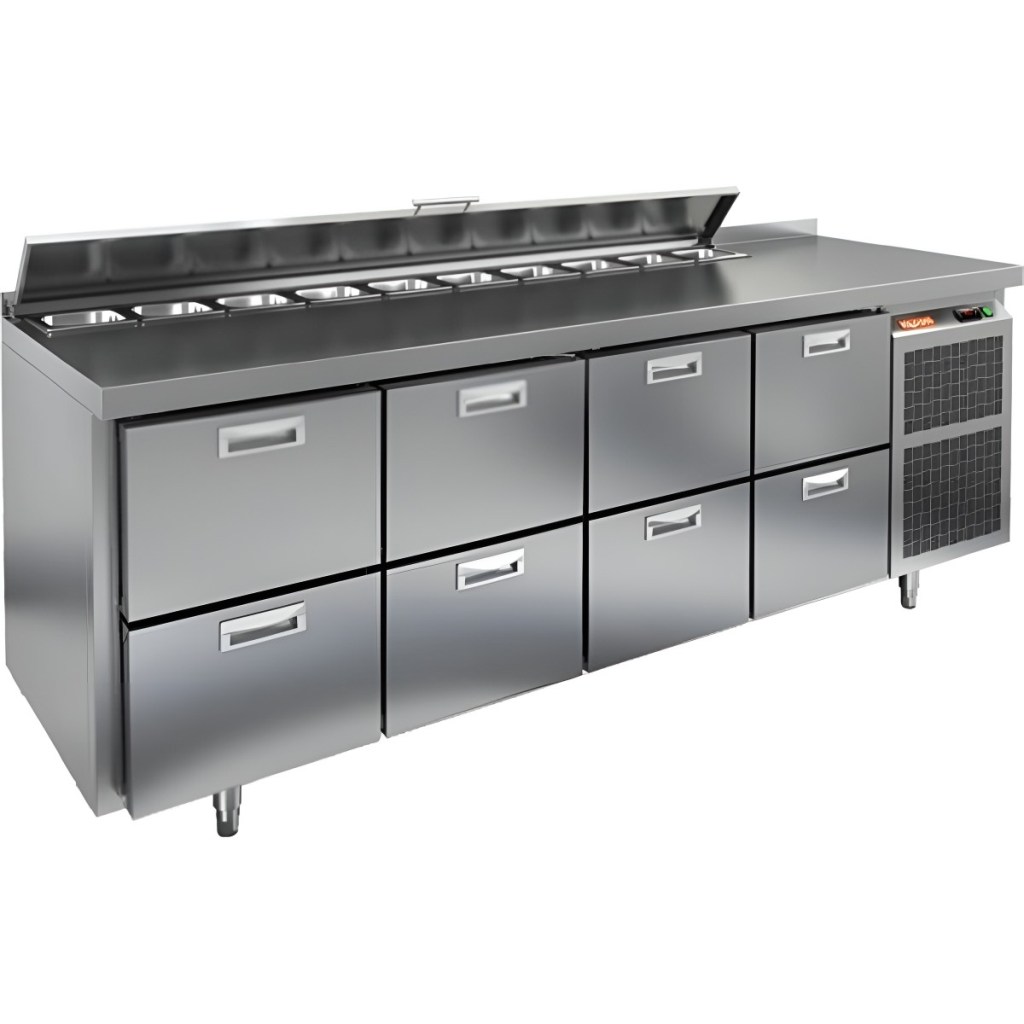 Каталог оборудования Холодильное оборудованиеСтолы охлаждаемыеСтолы холодильные для салатовСтол холодильный для салатов HiCold SL1-2222GN (1/3) с крышкой Стол холодильный для салатов HiCold SL1-2222GN (1/3) с крышкой Код товара: 064-840 Поделиться: WhatsAppTelegram СравнитьДобавить в КПВ избранное 0 320 392 ₽ В корзину 0 шт Под заказСамовывоз сегодня бесплатно Взять в кредит Купить в лизинг Получить консультацию в WhatsApp Описание Характеристики Отзывы 0 Инструкции 2 Стол холодильный для салатов HiCold SL1-2222GN (1/3) с крышкой предназначен для использования на предприятиях общественного питания и торговли. Он подходит для хранения, обработки и кратковременного охлаждения ингредиентов, применяемых при приготовлении пиццы, салатов, закусок и других блюд. Модель совмещает охлаждаемый объем и рабочую поверхность, что значительно повышает удобство и скорость работы персонала. Корпус и столешница выполнены из прочной и гигиеничной нержавеющей стали, устойчивой к влаге, загрязнениям и механическим повреждениям. Металлическая крышка защищает продукты от загрязнений и сохраняет их свежесть. Особенности модели: Электронная панель управления — точная настройка температуры. Салат-бар на 10 гастроемкостей — быстрый доступ к ингредиентам. 8 выдвижных ящика — удобное размещение продуктов. Съёмные магнитные уплотнители — герметичность и стабильная температура. Открытая агрегатная часть — лёгкое обслуживание. Регулируемые ножки — установка на любой поверхности. Глубина гастроемкостей до 150 мм, столешница и теплоизоляция — 50 мм. Высота борта — 50 мм — защита рабочей поверхности. HiCold SL1-2222GN (1/3) с крышкой — универсальное и функциональное решение для профессиональной кухни, позволяющее оптимизировать рабочие процессы и повысить производительность за счет удобного хранения и быстрого доступа к ингредиентам.Изображение товара, представленного на фото, может отличаться от его фактического вида. Показать все Габаритные размеры2280×700×850 ммДиапазон рабочей температурыот +2 до +10 °CРасположение агрегатаБоковое Материал столешницыНержавеющая Тип столаС ящиками Объём660 лТип гастроемкостейGN 1/3 Количество ящиков8 штРазмер полки530×325 ммНапряжение220 ВМощность0,48 кВтТип охлажденияДинамическое Тип оттайкиАвтоматическая СтолешницаС бортом Габариты в упаковке2420×850×1000 ммВес нетто145 кгВес брутто211 кгБрендHicold Оставить отзыв Еще никто не оставил отзыв на этот товар Паспорт на HICOLD SL1-2222GN.pdfДекларация о соответствии.pdf Ранее просмотрено Под заказ 204 930 ₽ Витрина холодильная Carboma GC110 VV 2,5-1 (с боковинами, динамика) 0011-9006