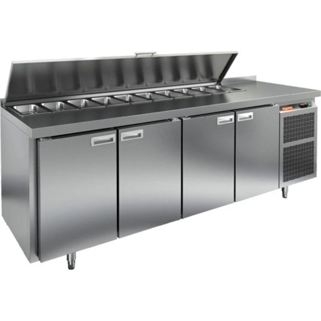 Устройство совмещает рабочую поверхность и охлаждаемый отсек, что делает процесс приготовления более удобным и организованным — все продукты всегда под рукой. Корпус и столешница выполнены из прочной нержавеющей стали, что гарантирует надежность, простоту в уходе и долговечность оборудования.