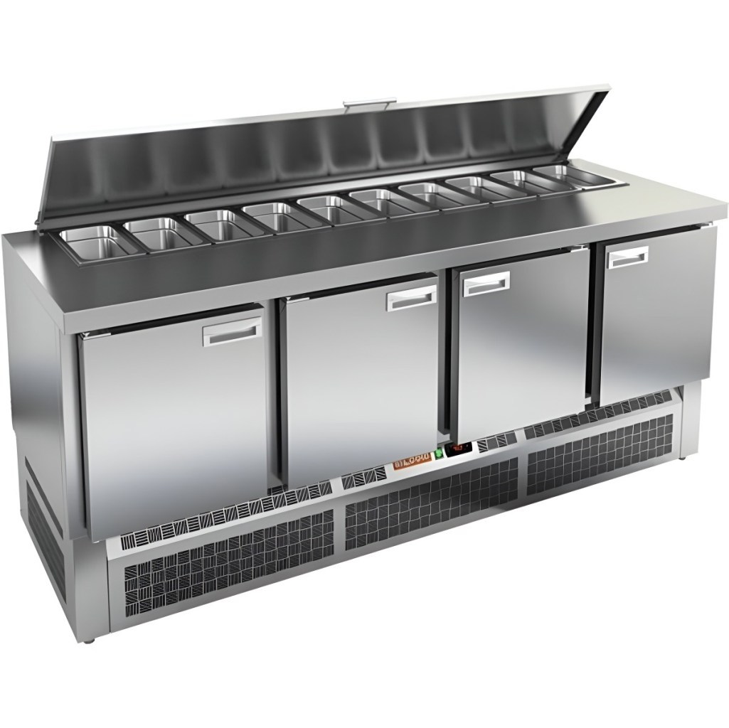 Каталог оборудования Холодильное оборудованиеСтолы охлаждаемыеСтолы холодильные для салатовСтол холодильный для салатов HiCold SLE1-11111GN (1/3) О с крышкой Стол холодильный для салатов HiCold SLE1-11111GN (1/3) О с крышкой Код товара: 064-545 Поделиться: WhatsAppTelegram СравнитьДобавить в КПВ избранное 0 172 162 ₽ В корзину 0 шт Под заказСамовывоз сегодня бесплатно Взять в кредит Купить в лизинг Получить консультацию в WhatsApp Описание Характеристики Отзывы 0 Инструкции 2 Стол холодильный для салатов HiCold SLE1-1111GN (1/3) О с крышкой предназначен для предприятий общественного питания и торговли. Он позволяет хранить и обрабатывать ингредиенты для пиццы, салатов и других блюд, а также охлаждать и кратковременно хранить скоропортящиеся продукты и напитки. Модель совмещает рабочую поверхность и охлаждаемый объем, что обеспечивает удобство работы повара: все необходимые компоненты всегда под рукой. Корпус и столешница выполнены из нержавеющей стали, что гарантирует долговечность и простоту ухода. Особенности: Динамическая система охлаждения — равномерное распределение температуры по всему объему. Автоматическая оттайка — упрощает уход за оборудованием. Электронная панель управления — удобная настройка температуры и режимов работы. 4 вместительные внутренние полки формата GN 1/1 — оптимальное хранение ингредиентов. Автоматические доводчики дверей с фиксатором открытого положения — комфорт и безопасность работы. Легкозаменяемые магнитные уплотнители — простота обслуживания. Открытая агрегатная часть — облегчает доступ для обслуживания. Регулируемые по высоте ножки — адаптация к рабочей поверхности. Размер полки: 530×325 мм (GN 1/1) Максимальная глубина гастроемкостей: 100 мм Столешница без борта и с крышкой: толщина столешницы и теплоизоляции — 50 мм, высота борта — 50 мм HiCold SLE1-1111GN (1/3) О с крышкой — надежный и удобный стол для профессиональной кухни. Он обеспечивает эффективное охлаждение и хранение ингредиентов, а комбинированная рабочая поверхность с холодильным объемом упрощает работу повара, делая процесс приготовления быстрее и удобнее.Изображение товара, представленного на фото, может отличаться от его фактического вида. Показать все Габаритные размеры1970×700×800 ммДиапазон рабочей температурыот +2 до +10 °CРасположение агрегатаНижнее Материал столешницыНержавеющая Тип столаС дверьми Тип двериГлухая Объём505 лКоличество дверей4 штТип гастроемкостейGN 1/3 Размер полки530×325 ммНапряжение220 ВМощность0,46 кВтТип охлажденияДинамический Тип оттайкиАвтоматическая СтолешницаС бортом Вес нетто135 кгВес брутто195 кгБрендHicold Оставить отзыв Еще никто не оставил отзыв на этот товар Паспорт на HICOLD SLE1-1111GN (1/3) О.pdfДекларация о соответствии.pdf Ранее просмотрено Под заказ 320 122 ₽ Стол холодильный для салатов HiCold SL2-2222GN (1/6) с крышкой Под заказ 329 932 ₽ Стол холодильный для салатов HiCold SLE3-2222GN высокое стекло Под заказ 152 002 ₽ Стол холодильный для салатов HiCold SLE2-111SN (1/6) О З с крышкой Под заказ 260 092 ₽ Стол холодильный для салатов HiCold SL1-222GN (1/3) с крышкой