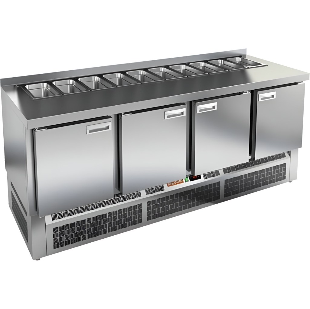 Каталог оборудования Холодильное оборудованиеСтолы охлаждаемыеСтолы холодильные для салатовСтол холодильный для салатов HiCold SLE1-1111SN (1/3) без крышки Стол холодильный для салатов HiCold SLE1-1111SN (1/3) без крышки Код товара: 064-546 Поделиться: WhatsAppTelegram 0 Цена по запросу Получить консультацию в WhatsApp Описание Характеристики Отзывы 0 Инструкции 2 Стол холодильный для салатов HiCold SLE1-1111SN (1/3) без крышки предназначен для предприятий общественного питания и торговли. Он позволяет хранить и обрабатывать ингредиенты для пиццы, салатов и других блюд, а также охлаждать и кратковременно хранить скоропортящиеся продукты и напитки. Модель совмещает рабочую поверхность и охлаждаемый объем, что обеспечивает удобство работы повара: все необходимые компоненты всегда под рукой. Корпус и столешница выполнены из нержавеющей стали, что гарантирует долговечность и простоту ухода. Особенности: Динамическая система охлаждения — равномерное распределение температуры по всему объему. Автоматическая оттайка — упрощает уход за оборудованием. Электронная панель управления — удобная настройка температуры и режимов работы. 4 вместительные внутренние полки формата GN 1/1 — оптимальное хранение ингредиентов. Автоматические доводчики дверей с фиксатором открытого положения — комфорт и безопасность работы. Легкозаменяемые магнитные уплотнители — простота обслуживания. Открытая агрегатная часть — облегчает доступ для обслуживания. Регулируемые по высоте ножки — адаптация к рабочей поверхности. Размер полки: 430×325 мм (GN 1/1) Максимальная глубина гастроемкостей: 100 мм Столешница с бортом, без крышки: толщина столешницы и теплоизоляции — 50 мм, высота борта — 50 мм HiCold SLE1-1111SN (1/3) без крышки — надежный и удобный стол для профессиональной кухни. Он обеспечивает эффективное охлаждение и хранение ингредиентов, а комбинированная рабочая поверхность с холодильным объемом упрощает работу повара, делая процесс приготовления быстрее и удобнее.Изображение товара, представленного на фото, может отличаться от его фактического вида. Показать все Габаритные размеры1970×700×800 ммДиапазон рабочей температурыот +2 до +10 °CРасположение агрегатаНижнее Материал столешницыНержавеющая Тип столаС дверьми Тип двериГлухая Объём430 лКоличество дверей4 штТип гастроемкостейGN 1/3 Размер полки430×325 ммНапряжение220 ВМощность0,46 кВтТип охлажденияДинамический Тип оттайкиАвтоматическая СтолешницаС бортом Вес нетто131 кгВес брутто185 кгБрендHicold Оставить отзыв Еще никто не оставил отзыв на этот товар Паспорт на HICOLD SLE1-1111SN (1/3).pdfДекларация о соответствии.pdf Ранее просмотрено В наличии 187 880 ₽ Котел пищеварочный Аbat КПЭМ-60-ОР В наличии 58 221 ₽ Шкаф холодильный TEFCOLD BC145 W/FAN Под заказ 106 930 ₽ Моноблок холодильный среднетемпературный Арктика ММС 225 (380 В) В наличии 11 283 ₽ Аппарат для горячего шоколада HURAKAN HKN-CHM03 Под заказ 12 667 ₽ Стеллаж с 4-я сплошными полками МХМ С-4-0,4/0,8/1,6 (нержавейка) В наличии 148 469 ₽ Стол морозильный низкотемпературный Polair TB3GN-G