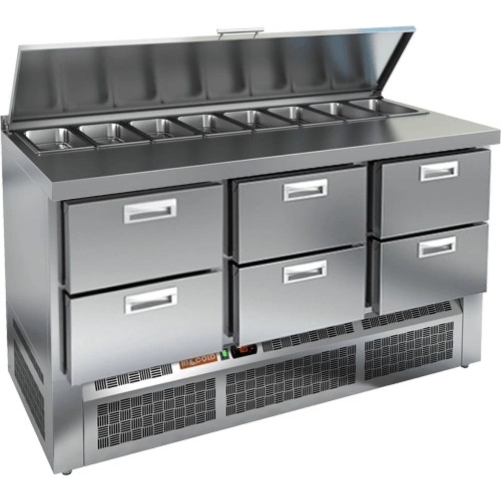 Модель сочетает в себе прочную рабочую поверхность и охлаждаемый внутренний объем, что упрощает процесс приготовления: все необходимые ингредиенты всегда под рукой. Корпус и столешница изготовлены из нержавеющей стали, устойчивой к воздействию влаги, механическим повреждениям и легко поддающейся очистке. Металлическая крышка защищает продукты от загрязнений и сохраняет их свежесть.