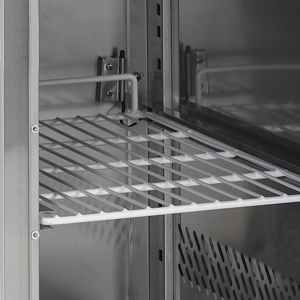 Стол оснащён компрессором, градусником, 3 полками GN 1/1 и регулируемыми ножками, что обеспечивает удобство работы и эффективное использование внутреннего объёма.