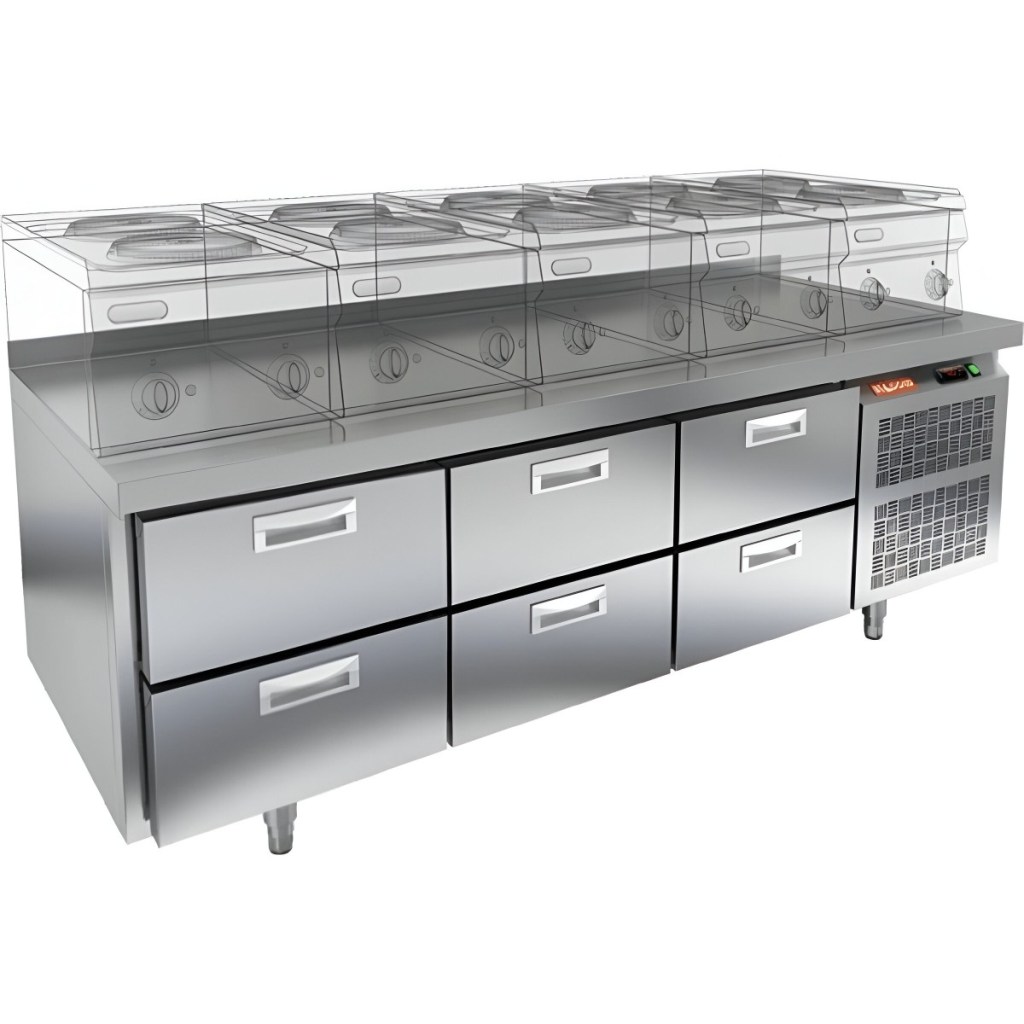 Каталог оборудования Холодильное оборудованиеСтолы охлаждаемыеСтолы холодильные под тепловое оборудованиеСтол охлаждаемый HiCold GN 222/TN LT SH под тепловое оборудование Стол охлаждаемый HiCold GN 222/TN LT SH под тепловое оборудование Код товара: 065-447 Поделиться: WhatsAppTelegram СравнитьДобавить в КПВ избранное 0 222 292 ₽ В корзину 0 шт Под заказСамовывоз сегодня бесплатно Взять в кредит Купить в лизинг Получить консультацию в WhatsApp Описание Характеристики Отзывы 0 Инструкции 2 Стол охлаждаемый HiCold GN 222/TN LT SH под тепловое оборудование предназначен для обработки продуктов и временного хранения скоропортящихся ингредиентов и напитков на предприятиях общественного питания и торговли. Устройство совмещает функции холодильной камеры и рабочей поверхности, что делает его особенно удобным для профессиональных кухонь. Столешница рассчитана на установку теплового оборудования: под рабочей поверхностью встроен ДСП-лист, который укрепляет конструкцию и препятствует проникновению тепла внутрь. Такое решение обеспечивает дополнительную жесткость, позволяет рационально использовать рабочее пространство и повышает эффективность работы на кухне. Особенности: 6 выдвижных ящиков обеспечивают удобный доступ к продуктам и рациональную организацию пространства Автоматические доводчики дверей с фиксатором открытого положения улучшают эргономику работы и помогают сохранить холод внутри камеры. Легкозаменяемые магнитные уплотнители способствуют герметичности и простоте технического обслуживания. Конструкция на низких ножках обеспечивает стабильность и удобство эксплуатации. Толщина столешницы — 50 мм обеспечивает надёжную опору при интенсивной эксплуатации. Высота борта — 50 мм препятствует скатыванию продуктов и инвентаря. Толщина теплоизоляции — 50 мм способствует энергоэффективности и поддержанию стабильной температуры. Температурный диапазон окружающей среды — от 12 до 37 °C, что делает оборудование универсальным в разных климатических условиях. HiCold GN 222/TN LT SH сочетает функциональность, надёжность и простоту в обслуживании. Идеально подходит для кухонь ресторанов, кафе и других заведений общепита, где важно одновременно эффективно хранить продукты и иметь под рукой рабочее пространство.Изображение товара, представленного на фото, может отличаться от его фактического вида. Показать все Габаритные размеры1835×700×610 ммДиапазон рабочей температурыот -2 до +10 °CМатериал столешницыНержавеющая Расположение агрегатаБоковое Объём375 лТип столаС ящиками Количество ящиков6 штНапряжение220 ВМощность0,46 кВтТип охлажденияДинамический Тип оттайкиАвтоматическая СтолешницаС бортом Габариты в упаковке2000×850×850 ммВес нетто124 кгВес брутто170 кгБрендHicold Оставить отзыв Еще никто не оставил отзыв на этот товар Паспорт на HICOLD GN 222TN LT.pdfДекларация о соответствии.pdf Похожие товары Перейти в каталог Под заказ 137 619 ₽ Стол холодильный среднетемпературный Polair TD3GN-G Под заказ 108 164 ₽ Стол холодильный среднетемпературный HURAKAN HKN-GN3TN С этим товаром покупают Под заказ 389 300 ₽ Шкаф холодильный для вызревания мяса Polair CS107 Meat (Тип 1) Ранее просмотрено Под заказ 200 512 ₽ Стол морозильный HiCold GN 1111/BT LT под тепловое оборудование Под заказ Цена по запросу Горка холодильная Dazzl Vega 070 H210 375 фруктовая Под заказ Цена по запросу Горка холодильная Dazzl Vega 070 H210 125 фруктовая Под заказ 281 602 ₽ Стол о