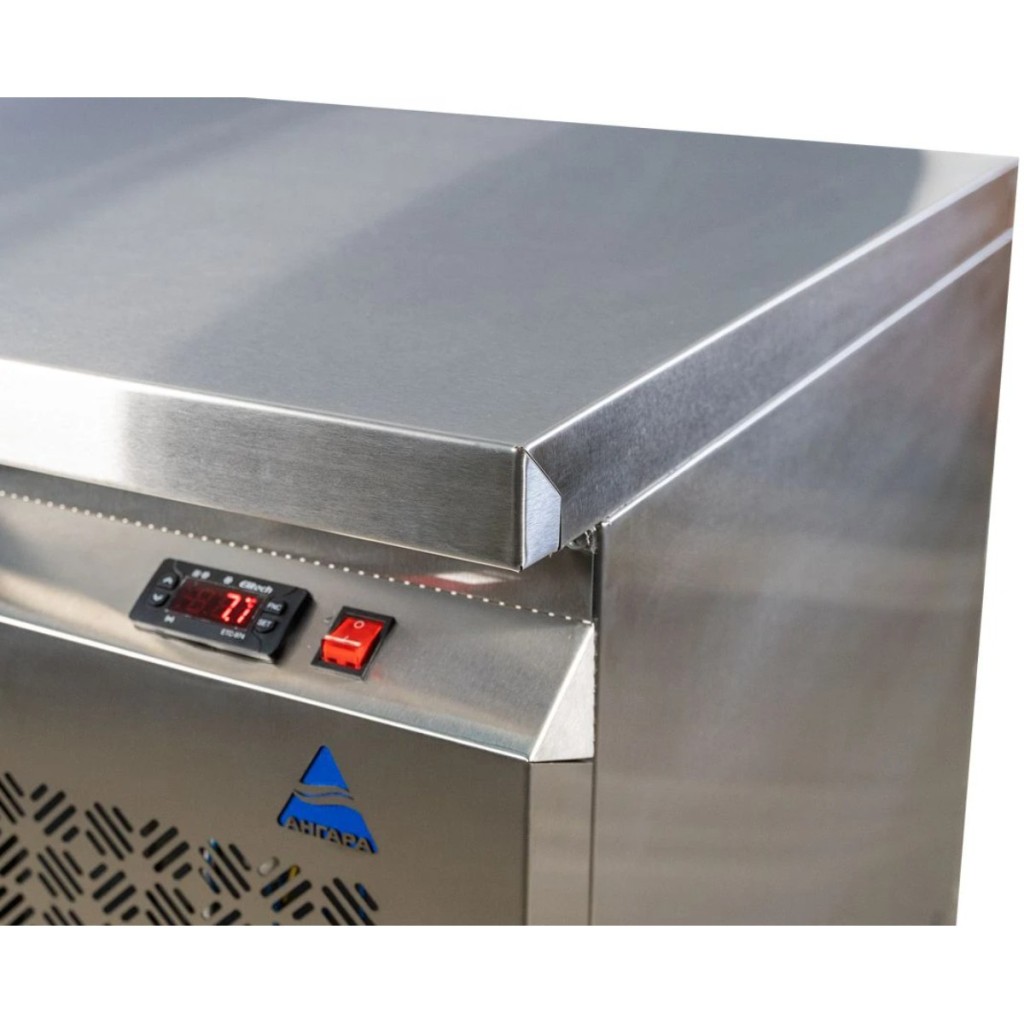 Каталог оборудования Холодильное оборудованиеСтолы охлаждаемыеСтолы холодильные среднетемпературныеСтол холодильный среднетемпературный Ангара СХБ 0,9-700 Стол холодильный среднетемпературный Ангара СХБ 0,9-700 Код товара: 066-347 Поделиться: WhatsAppTelegram СравнитьДобавить в КПВ избранное 0 103 840 ₽ В корзину 0 шт Под заказСамовывоз сегодня бесплатно Взять в кредит Купить в лизинг Получить консультацию в WhatsApp Описание Характеристики Отзывы 0 Стол холодильный среднетемпературный Ангара СХБ 0,9-700 предназначен для обработки ингредиентов и кратковременного хранения скоропортящихся продуктов и напитков на предприятиях общественного питания и торговли. Модель сочетает компактные размеры, функциональность и надёжность, обеспечивая удобство работы на кухне. Особенности модели: Электронное управление — интуитивно понятная панель позволяет точно регулировать температурный режим и контролировать работу устройства. Корпус и столешница из нержавеющей стали — обеспечивают долговечность, устойчивость к коррозии и лёгкость в уходе. Одна дверца и одна полка 530×325 мм — обеспечивают удобный доступ к продуктам и эффективное использование внутреннего пространства. Регулируемые ножки — позволяют адаптировать высоту стола под индивидуальные условия рабочей зоны. Автоматические доводчики дверей с фиксацией — двери закрываются плавно и остаются зафиксированными в открытом положении при необходимости. Съёмные магнитные уплотнители — упрощают чистку и замену, поддерживая герметичность и эффективность охлаждения. Диапазон температур: -2…+10 °C / +2…+10 °C, что позволяет использовать стол как для охлаждённых, так и для быстро портящихся продуктов. Холодильный стол Ангара СХБ 0,9-700 — это практичное и надёжное решение для профессиональных кухонь и торговых точек. Совмещение эргономичной конструкции, долговечных материалов и точного электронного контроля температуры обеспечивает удобство эксплуатации и эффективное хранение продуктов в оптимальных условиях.Изображение товара, представленного на фото, может отличаться от его фактического вида. Показать все Габаритные размеры900×700×850 ммДиапазон рабочей температурыот -2 до +10 °CРасположение агрегатаБоковое Материал столешницыНержавеющая Тип столаС дверьми Тип двериГлухая Объём150 лКоличество дверей1 штКоличество полок1 штРазмер полки530×325 ммНапряжение220 ВМощность0,15 кВтТип охлажденияДинамическое Тип оттайкиАвтоматическая СтолешницаС бортом БрендАнгараВсе нержавеющие холодильные столы Все холодильные столы с бортом Оставить отзыв Еще никто не оставил отзыв на этот товар Ранее просмотрено Под заказ 122 647 ₽ Витрина морозильная Таир ВХН-2,0 Cube (черные боковины) Под заказ 278 632 ₽ Стол морозильный HiCold GNE 1222/BT