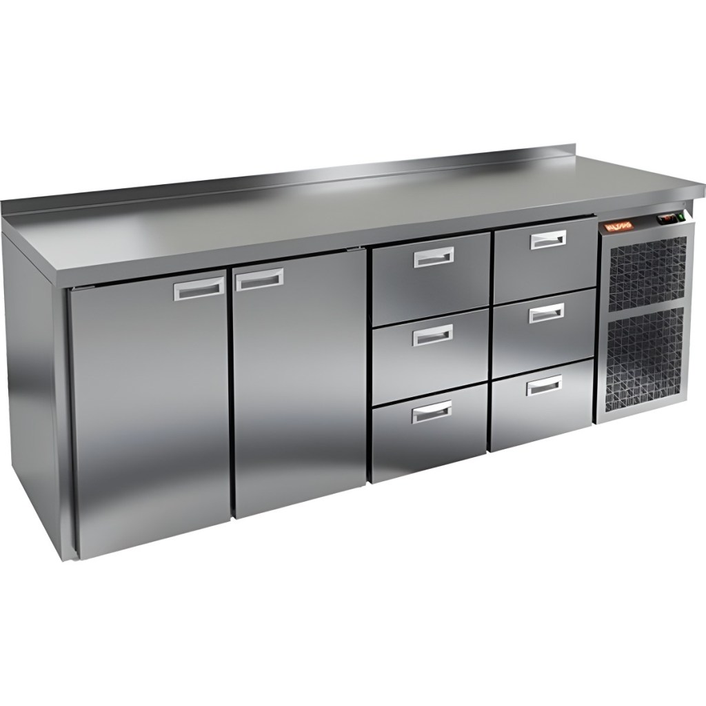 Каталог оборудования Холодильное оборудованиеСтолы охлаждаемыеСтолы холодильные среднетемпературныеСтол холодильный среднетемпературный HiCold BN 1133 BR2 TN Стол холодильный среднетемпературный HiCold BN 1133 BR2 TN Код товара: 062-319 Поделиться: WhatsAppTelegram СравнитьДобавить в КПВ избранное 0 275 031 ₽ В корзину 0 шт В наличииСамовывоз сегодня бесплатно Взять в кредит Купить в лизинг Получить консультацию в WhatsApp Описание Характеристики Отзывы 0 Стол холодильный среднетемпературный HiCold BN 1133 BR2 TN — это многофункциональное профессиональное оборудование, предназначенное для предприятий общественного питания и торговли. Он обеспечивает удобную поверхность для раскатки теста и подготовки продуктов, а также выполняет функцию охлаждаемого шкафа для кратковременного хранения скоропортящихся ингредиентов и напитков. Устройство оснащено удобной электронной панелью управления и выполнено из нержавеющей стали, что гарантирует долговечность и простоту в уходе. Комплектация: 2 полки размером 330×325 мм. Особенности модели: Надёжный компрессор от мирового производителя — стабильная и эффективная работа. Принудительная вентиляция — обеспечивает равномерное распределение холода во всём объёме камеры. Цельнозаливной корпус с теплоизоляцией 50 мм — сводит к минимуму потери холода, придаёт конструкции прочность. Автоматические дверные доводчики с фиксатором — для комфортного и безопасного использования. Магнитные уплотнители, которые легко заменить при необходимости — сохраняют герметичность. Регулируемые по высоте ножки — удобная установка на любой поверхности. Упрощённый доступ к агрегату — быстрое техническое обслуживание без лишних усилий. Толщина столешницы — 50 мм, высота борта — 50 мм — прочная и безопасная рабочая зона. Поддерживает работу при температуре окружающей среды от +12 до +37 °C. HiCold BN 1133 BR2 TN — это надёжный и функциональный холодильный стол, сочетающий в себе рабочую поверхность и охлаждаемое хранение. Он обеспечивает высокую производительность, удобство в эксплуатации и соответствует требованиям современной профессиональной кухни. Отличный выбор для кафе, ресторанов и пищевых производств.Изображение товара, представленного на фото, может отличаться от его фактического вида. Показать все Габаритные размеры2280×500×850 ммДиапазон рабочей температурыот -2 до +10 °CРасположение агрегатаБоковое Материал столешницыНержавеющая Тип столаС дверьми и ящиками Тип двериГлухая Объём530 лКоличество дверей2 штКоличество полок2 штКоличество ящиков6 штРазмер полки330×325 ммНапряжение220 ВМощность0,48 кВтТип охлажденияДинамический Тип оттайкиАвтоматическая СтолешницаС бортом Вес нетто145 кгВес брутто165 кгБрендHicoldВсе холодильные столы HicoldВсе нержавеющие холодильные столы Все холодильные столы с бортом Оставить отзыв Еще никто не оставил отзыв на этот товар Похожие товары Перейти в каталог Под заказ 79 911 ₽ Стол холодильный среднетемпературный HiCold GN 1/TN W Под заказ 104 947 ₽ Стол холодильный среднетемпературный Abat СХС-70 с бортом (дверь) С этим товаром покупают В наличии 96 390 ₽ Шкаф холодильный Полюс Carboma R560 В наличии 58 095 ₽ Витрина холодильная для ингредиентов HICOLD VRTU 1835 1/3 Ранее просмотрено Под заказ 185 572 ₽ Стол холодильный среднетемпературный HiCold GN 22/TN З Под заказ 84 879 ₽ Витрина холодильная для ингредиентов HICOLD VRTG 2280 1/3 Под заказ 312 292 ₽ Стол холодильн
