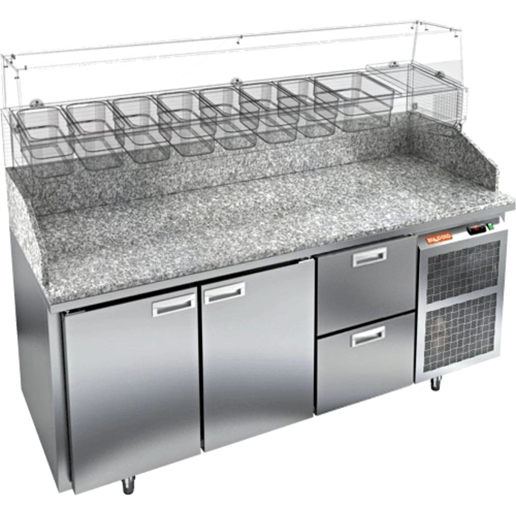 Каталог оборудования Холодильное оборудованиеСтолы охлаждаемыеСтолы холодильные для пиццыСтол холодильный для пиццы HiCold PZ3-112/GN камень Стол холодильный для пиццы HiCold PZ3-112/GN камень Код товара: 065-006 Поделиться: WhatsAppTelegram СравнитьДобавить в КПВ избранное 0 297 352 ₽ В корзину 0 шт Под заказСамовывоз сегодня бесплатно Взять в кредит Купить в лизинг Получить консультацию в WhatsApp Описание Характеристики Отзывы 0 Стол холодильный для пиццы HiCold PZ3-112/GN камень предназначен для использования в пиццериях, кафе, магазинах и ресторанах. Он сочетает корпус из нержавеющей стали и гранитную столешницу, идеально подходящую для раскатки теста и подготовки ингредиентов. Благодаря совмещению рабочей поверхности и охлаждаемого объёма, стол обеспечивает удобную организацию процессов и кратковременное хранение скоропортящихся продуктов. Витрина приобретается отдельно. Особенности модели: Охлаждение: динамическое — равномерное поддержание температуры Оттайка: автоматическая — удобство и экономия времени Панель управления: электронная — точная настройка температуры Ножки: регулируемые по высоте — устойчивость на неровной поверхности Двери: 2 глухие двери с автоматическими доводчиками и фиксатором открытого положения Ящики: 2 выдвижных ящика — удобное хранение ингредиентов Уплотнители: легкозаменяемые магнитные — герметичность и простота обслуживания Толщина теплоизоляции: 50 мм — сохранение холода и энергоэффективность Рабочая поверхность: глубина 680 мм — удобство работы HiCold PZ3-112/GN камень— это надёжный и функциональный холодильный стол для пиццы, который сочетает прочность, эргономику и эффективное охлаждение. Благодаря гранитной столешнице, корпусу из нержавеющей стали, двум глухим дверям и двум выдвижным ящикам он станет универсальным решением для профессиональной кухни. Изображение товара, представленного на фото, может отличаться от его фактического вида. Показать все Габаритные размеры1835×700×1050 ммДиапазон рабочей температурыот +2 до +10 °CРасположение агрегатаБоковое Материал столешницыГранитная Тип столаС дверьми и ящиками Тип двериГлухая Объём505 лКоличество дверей2 штКоличество ящиков2 штРазмер полки530×325 ммНапряжение220 ВМощность0,5 кВтТип охлажденияДинамическое Тип оттайкиАвтоматическая Габариты в упаковке2000×850×1180 ммВес нетто172 кгВес брутто192 кгБрендHicoldВсе холодильные столы для пиццы HicoldВсе нержавеющие холодильные столы для пиццы Оставить отзыв Еще никто не оставил отзыв на этот товар Ранее просмотрено В наличии 194 514 ₽ Моноблок холодильный среднетемпературный АСК-холод МС-32 Под заказ 559 511 ₽ Сплит-система холодильная низкотемпературная Север BGS 545 S (с ВПУ) В наличии 83 038 ₽ Сплит-система холодильная среднетемпературная Belluna Лайт S115 W (с зимним комплектом) Под заказ 185 793 ₽ Сплит-система холодильная низкотемпературная Север BGS 220 S L4 В наличии 117 553 ₽ Сплит-система холодильная среднетемпературная Belluna Лайт S226 W (с зимним комплектом) Под заказ 318 869 ₽ Сплит-система холодильная среднетемпературная Intercold MCM 462 PR FT Под заказ 13 100 ₽ Направляющая линии Abat Аста МП-90К в сборе (МПН90К-13СБ)