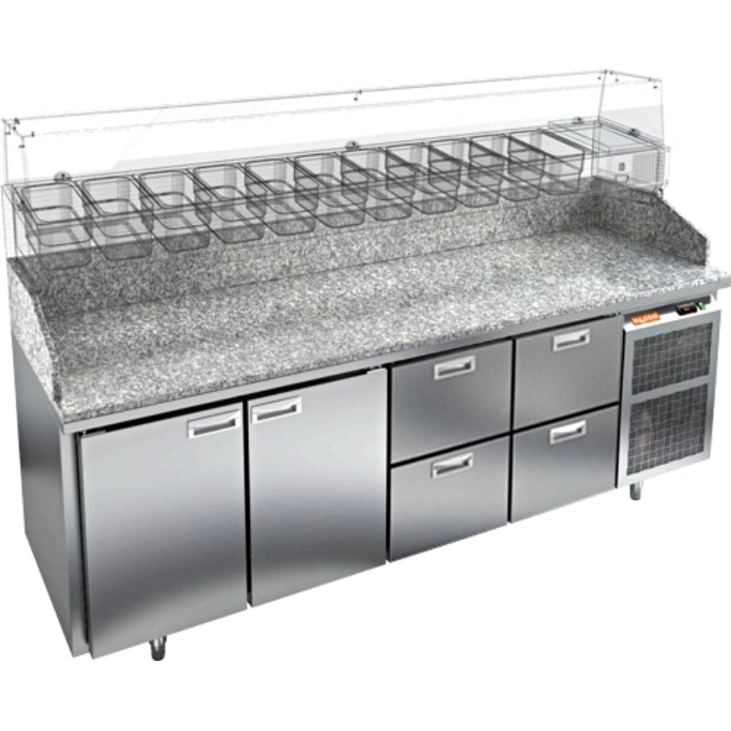 Каталог оборудования Холодильное оборудованиеСтолы охлаждаемыеСтолы холодильные для пиццыСтол холодильный для пиццы HiCold PZ3-1122/GN камень Стол холодильный для пиццы HiCold PZ3-1122/GN камень Код товара: 065-014 Поделиться: WhatsAppTelegram СравнитьДобавить в КПВ избранное 0 345 322 ₽ В корзину 0 шт Под заказСамовывоз сегодня бесплатно Взять в кредит Купить в лизинг Получить консультацию в WhatsApp Описание Характеристики Отзывы 0 Стол холодильный для пиццы HiCold PZE3-221/GN камень предназначен для использования в пиццериях, кафе, магазинах и ресторанах. Он идеально подходит для раскатки теста, подготовки ингредиентов и кратковременного хранения скоропортящихся продуктов. Витрина приобретается отдельно. Стол сочетает корпус из нержавеющей стали и гранитную столешницу, которая устойчива к механическим и температурным нагрузкам и удобна в работе с тестом. Такая конструкция обеспечивает долговечность, гигиеничность и простоту ухода. Особенности модели: Охлаждение: динамическое — равномерное поддержание температуры Оттайка: автоматическая — удобство и экономия времени Панель управления: электронная — точная настройка температуры Ножки: регулируемые по высоте — устойчивость на неровной поверхности Двери: 1 глухая дверца с автоматическими доводчиками и фиксатором открытого положения Ящики: 4 выдвижных ящика — удобное хранение ингредиентов Уплотнители: легкозаменяемые магнитные — герметичность и простота обслуживания Толщина теплоизоляции: 50 мм — сохранение холода и энергоэффективность Рабочая поверхность: глубина 680 мм — удобство работы HiCold PZE3-221/GN камень— это надёжный и функциональный холодильный стол для пиццы, который сочетает прочность, эргономику и эффективное охлаждение. Благодаря гранитной столешнице, корпусу из нержавеющей стали, двум глухим дверям и двум выдвижным ящикам он станет универсальным решением для профессиональной кухни. Изображение товара, представленного на фото, может отличаться от его фактического вида. Показать все Габаритные размеры2280×700×1050 ммДиапазон рабочей температурыот +2 до +10 °CРасположение агрегатаБоковое Материал столешницыГранитная Тип столаС дверьми и ящиками Тип двериГлухая Объём660 лКоличество дверей2 штКоличество ящиков4 штРазмер полки530×325 ммНапряжение220 ВМощность0,5 кВтТип охлажденияДинамическое Тип оттайкиАвтоматическая Габариты в упаковке2430×850×1140 ммВес нетто270 кгВес брутто320 кгБрендHicoldВсе холодильные столы для пиццы HicoldВсе нержавеющие холодильные столы для пиццы Оставить отзыв Еще никто не оставил отзыв на этот товар Ранее просмотрено Под заказ 473 797 ₽ Льдогенератор Scotsman MF 37 AS OX Под заказ 390 223 ₽ Сплит-система холодильная низкотемпературная Belluna Frost P313 Под заказ 115 968 ₽ Сплит-система холодильная низкотемпературная Ариада КLS 117