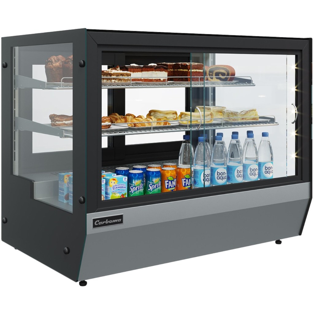 Carboma AC59 VM 0,9-1 (слайдер) (фронт стандартный цвет) — это надёжная и эргономичная охлаждаемая витрина с удобным доступом с обеих сторон, которая обеспечит качественную демонстрацию и сохранность продукции в кафе, барах и точках продаж.